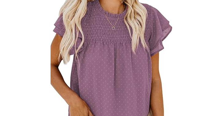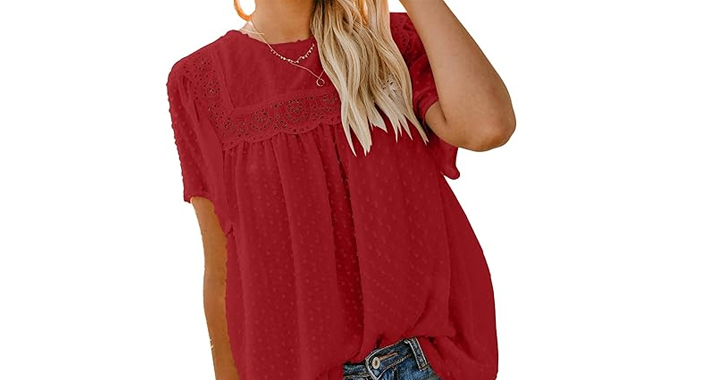 (0 customer reviews)Dokotoo Womens Crewneck Lace Crochet Pom Pom Flowy Short Sleeve Casual Shirts Blouses Tops